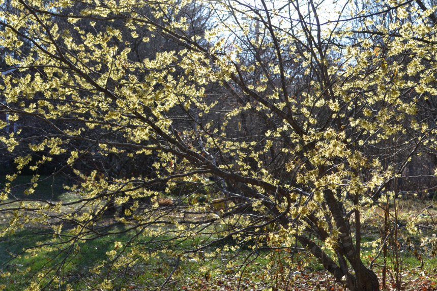Putting the garden to bed for the winter requires fertilizing, liming, composting, and mulching. Peak foliage explodes, trees and shrubs begin to lose leaves but a few, such as the fall blooming witch hazel, put on an autumnal show of blooms that warms a summer-grieving heart.