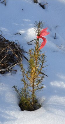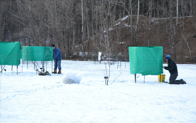In late November, we install wind screens on the fencing of our more fragile trees. Wind can do more damage than low temperatures.